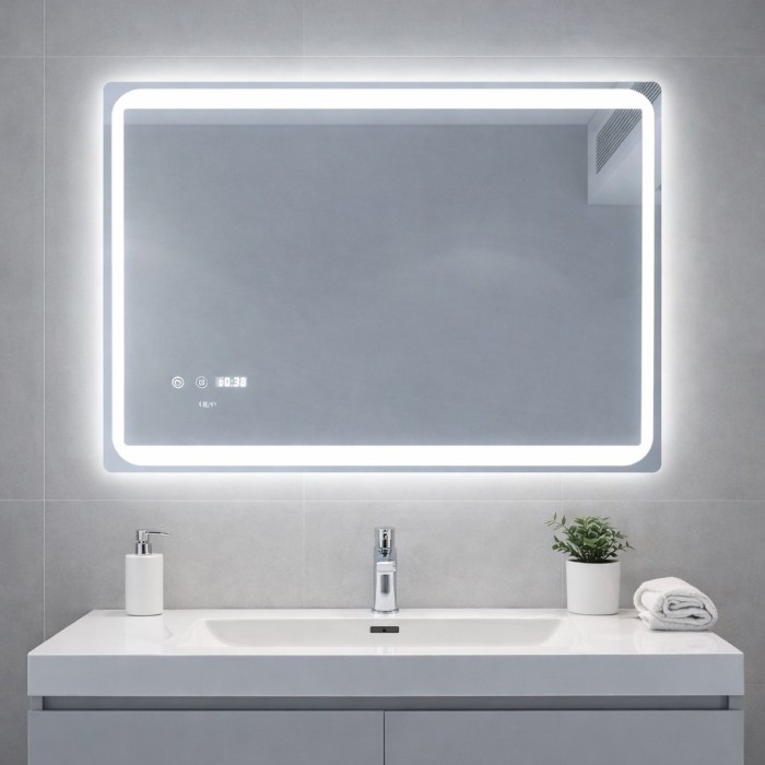 Tags: Mirror, 45631, LED, smart, with, anti-fog, function, , clock, and, thermometer